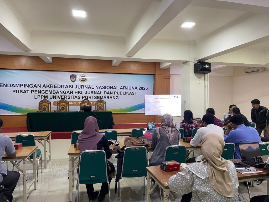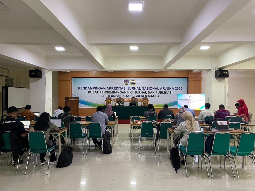 Lembaga Penelitian dan Pengabdian kepada Masyarakat (LPPM) Universitas PGRI Semarang melalui Pusat Pengembangan HKI, Jurnal, dan Publikasi menyelenggarakan kegiatan Pendampingan Akreditasi Jurnal Nasional ARJUNA Tahun 2025. Kegiatan ini bertujuan untuk meningkatkan kualitas pengelolaan jurnal ilmiah agar memenuhi standar akreditasi nasional yang ditetapkan oleh Kementerian Pendidikan, Kebudayaan, Riset, dan Teknologi.