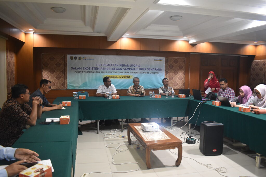Lembaga Penelitian dan Pengabdian kepada Masyarakat (LPPM) Universitas PGRI Semarang melalui Pusat Pengembangan Sains dan Teknologi menyelenggarakan kegiatan Focus Group Discussion (FGD) Pemetaan Peran UPGRIS dalam Ekosistem Pengelolaan Sampah di Kota Semarang. Kegiatan ini bertujuan untuk mengidentifikasi dan memperkuat peran strategis UPGRIS dalam mendukung pengelolaan sampah yang berkelanjutan di Kota Semarang.
