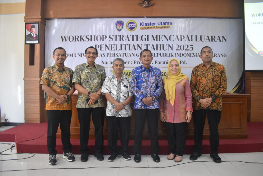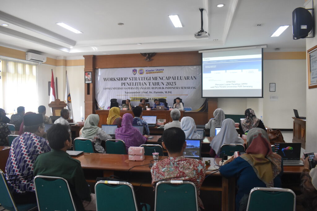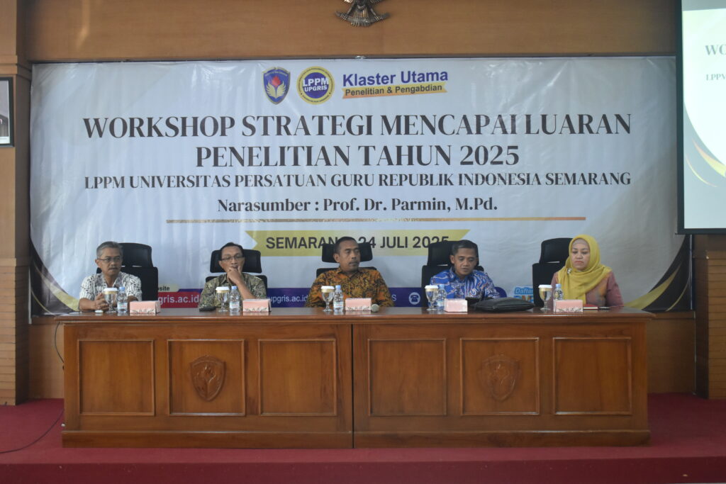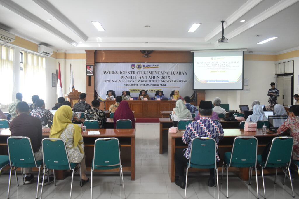 Semarang, 24 Juli 2025 — Lembaga Penelitian dan Pengabdian kepada Masyarakat (LPPM) Universitas Persatuan Guru Republik Indonesia (UPRI) Semarang menyelenggarakan Workshop Strategi Mencapai Luaran Penelitian Tahun 2025 sebagai upaya meningkatkan kualitas dan produktivitas penelitian dosen.