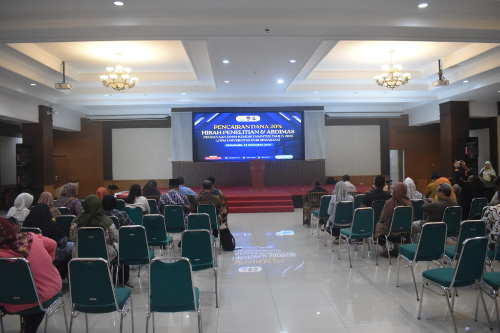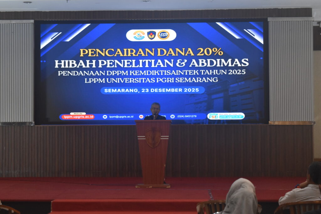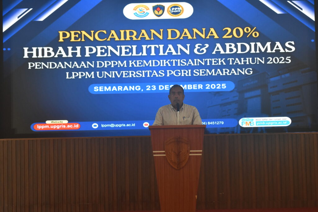Semarang – Lembaga Penelitian dan Pengabdian kepada Masyarakat (LPPM) Universitas PGRI Semarang melaksanakan Pencairan Dana Tahap I sebesar 20% Hibah Penelitian dan Pengabdian kepada Masyarakat (Abdimas) pendanaan DPPM Kemdiktisaintek Tahun 2025 pada Selasa, 23 Desember 2025.