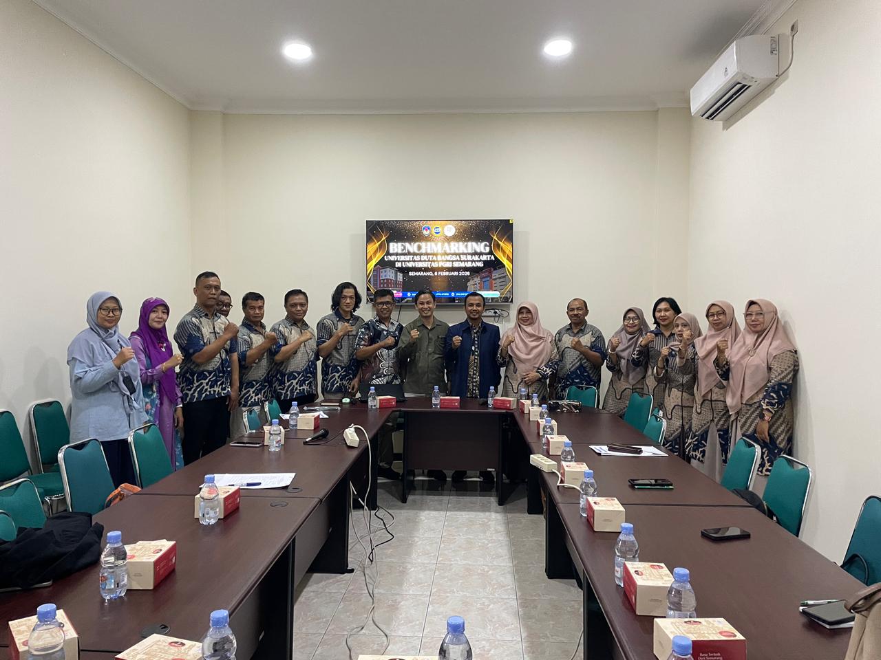 Semarang — Universitas PGRI Semarang menerima kunjungan kegiatan benchmarking dari Tim Kewirausahaan Universitas Duta Bangsa (UDB) Surakarta pada Jumat, 6 Februari 2026. Kegiatan ini dilaksanakan mulai pukul 07.00 WIB hingga selesai dan bertempat di Inkubator Bisnis Universitas PGRI Semarang.